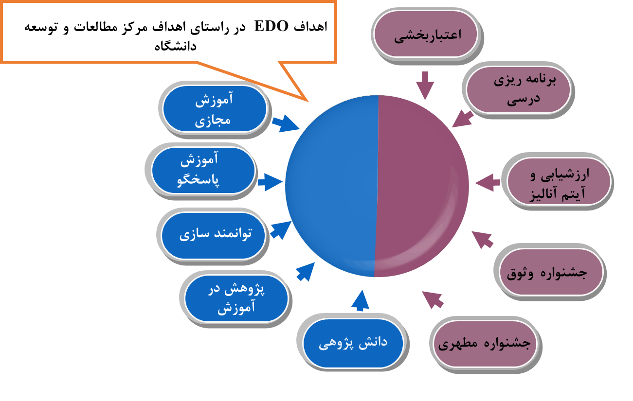 دفترتوسعه آموزش در راستای اهداف مرکز مطالعات و توسعه دانشگاه اهداف خود را در حیطه های عملکردی زیر دنبال خواهد نمود: